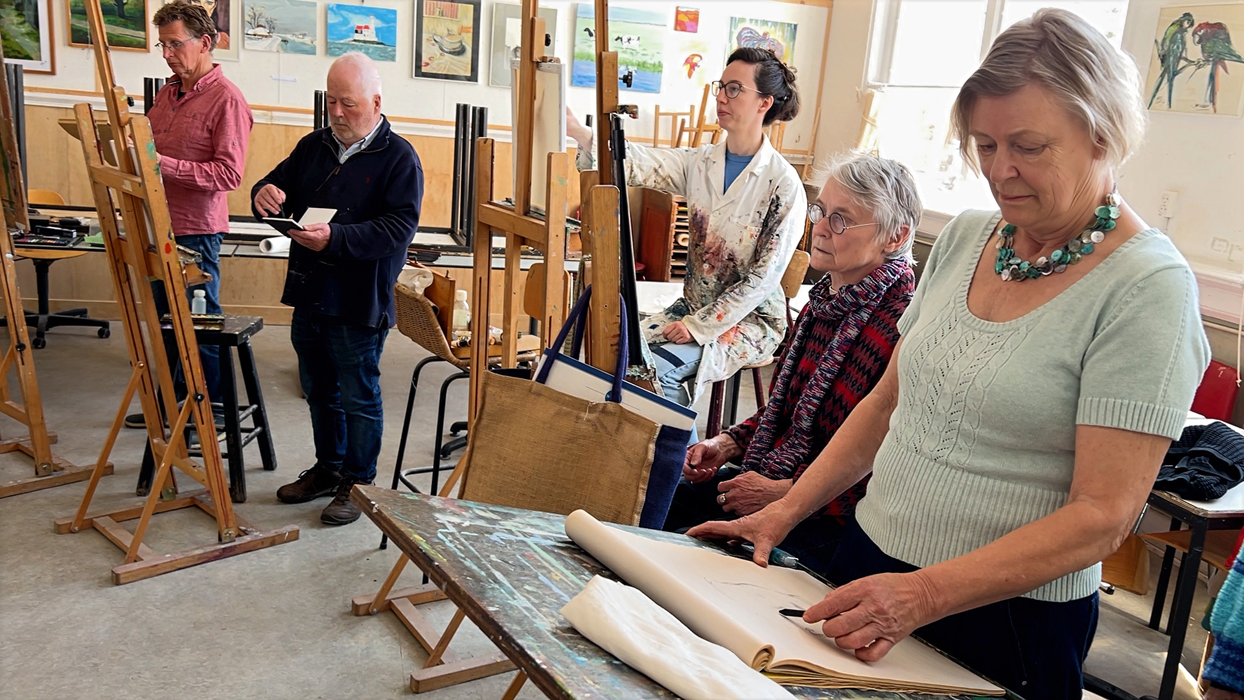Er wordt met verschillende teken- en schildersmaterialen gewerkt: aquarel, pastel, gouache, acrylverf, olieverf of potlood. Er wordt zoveel mogelijk ruimte gelaten voor ieders eigenheid. Zo nu en dan kiest men een thema in groepsverband. Er volgt geregeld een werkbespreking, om zo óók van elkaars werk te leren.