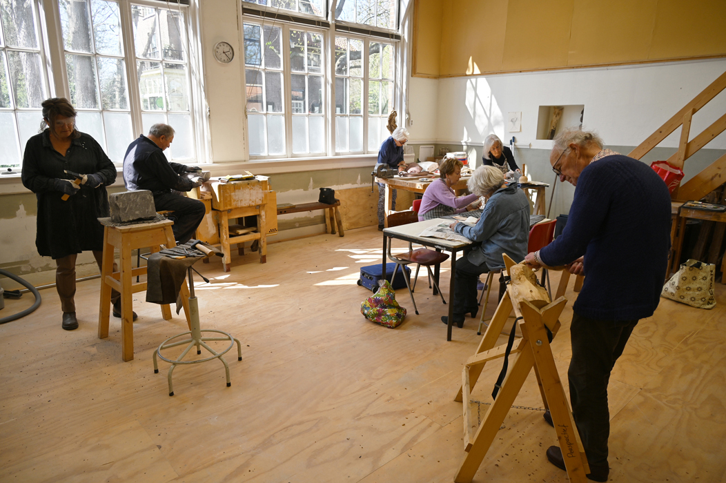 Deelnemers bepalen zelf met welk materiaal ze aan de slag gaan. In atelier 2 wordt voornamelijk gewerkt met gips en polystyreen. In atelier 3 wordt geboetseerd in was, klei of andere zachte materialen. Ook worden daar objecten/beelden gemaakt van gebruikte spullen, de zogenaamde ‘recycle art’. Het hakken in steen of hout, wordt uitgevoerd in atelier 4. In principe werkt iedereen individueel aan een beeld van zelfgekozen materiaal. Elk medium heeft zijn eigen zeggingskracht. Van tijd tot tijd is er een model, of geeft de docent een thema aan de groep. Het staat een ieder vrij om hieraan mee te doen.