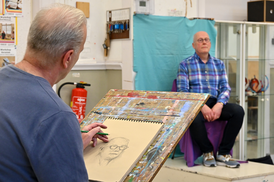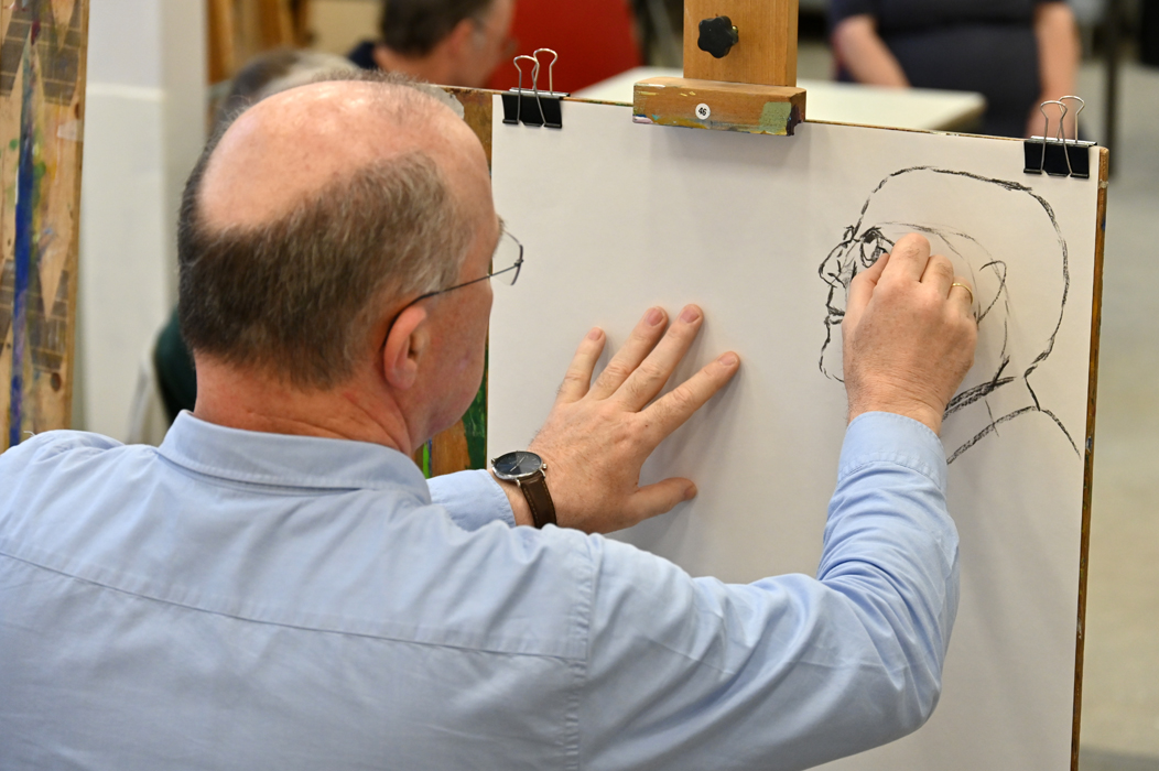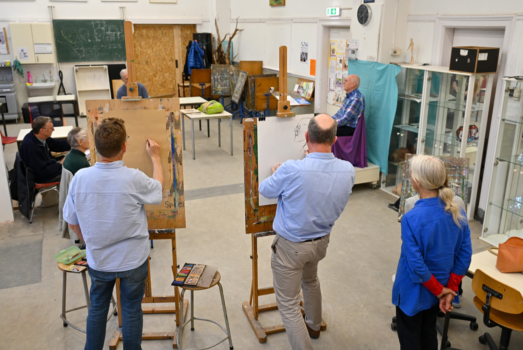 Begeleidster Maria Heideveld adviseert en stimuleert iedereen individueel, lettend op de mogelijkheden van de deelnemers. Om de 14 dagen is er een wisselend portret- of naaktmodel.