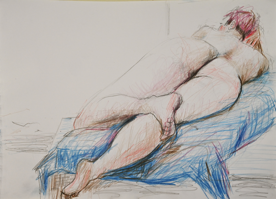 Maria begeleidt de modelgroep en geeft ook workshops model schilderen/tekenen bij Perspectief.